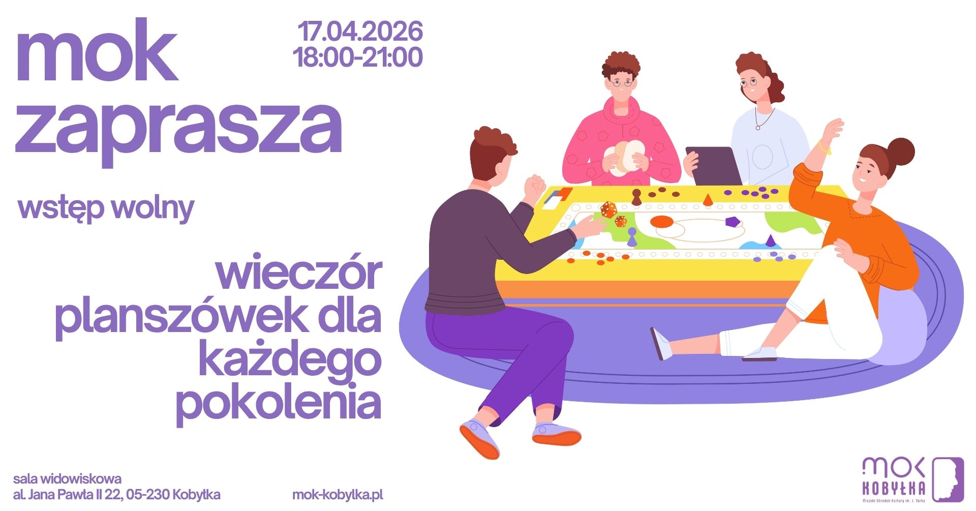 Zapraszamy wszystkich, w każdym wieku na wieczór gier planszowych – to będzie wieczór pełen dobrej